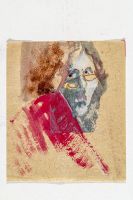 Autoportrait (fond blanc trace rouge) 14x13cm